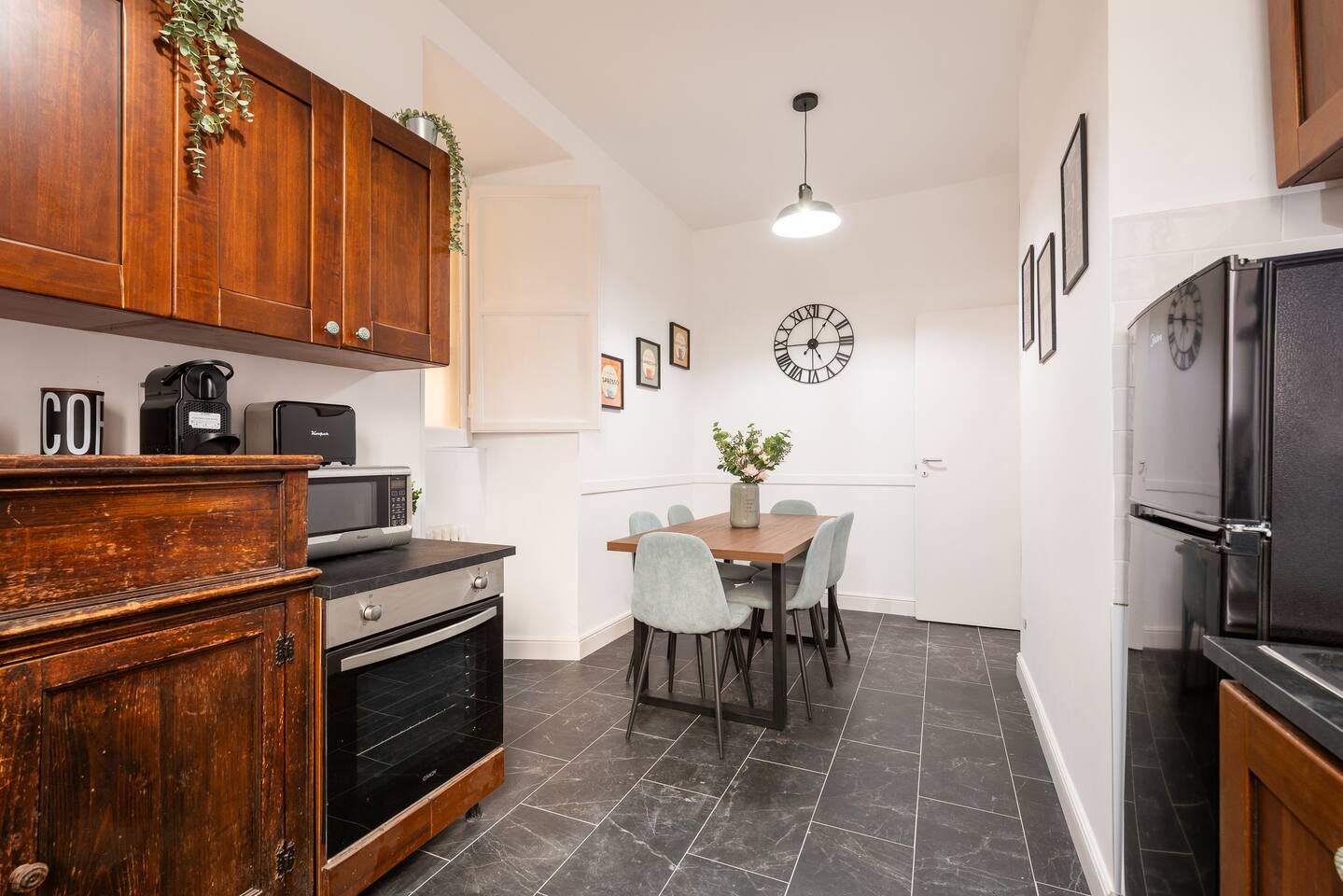 APARTMENT 2: Apartment of approximately 85m2 located on the -1 floor of an elegant building without a lift (there are approximately 16 steps to climb). Despite the plan, the house has regular windows and is very bright. The apartment can accommodate up to 7 people and consists of a fully equipped kitchen with a table where you can all eat together, 2 bathrooms, 3 double bedrooms (a single bed can be added to one of the bedrooms and it can become a triple room). To complete the property, in all rooms, there are smart TVs with NETFLIX and PRIME VIDEO (archive with over 1000 films and TV series in different languages), free fiber optic WIFI (very fast), air conditioning, independent heating, washing machine, dishwasher, oven, kettle, microwave, iron and ironing board, new and excellent quality upholstery and furniture.