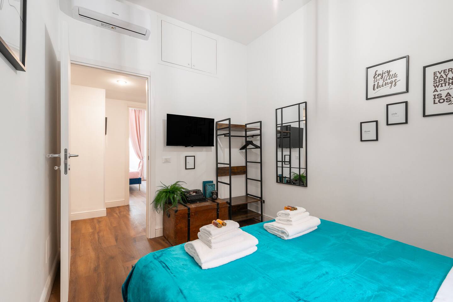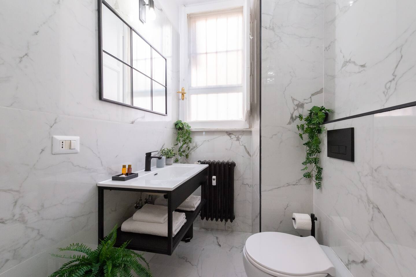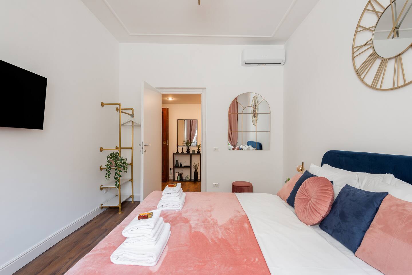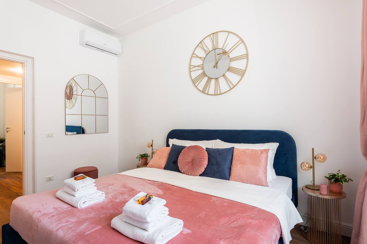 APARTMENT 1: Apartment of approximately 90m2 located on the ground floor of an elegant building without a lift (there are approximately 5 steps to climb). The house can accommodate up to 9 people and is composed of a fully equipped kitchen with a large table, 2 bathrooms, 3 bedrooms composed as follows: a double room with a double bed with hydromassage tub and en suite bathroom, a triple room with a double bed and a single sofa bed, a quadruple room with a double bed and a double sofa bed. To complete the property, in all rooms, there are smart TVs with NETFLIX and PRIME VIDEO (archive with over 1000 films and TV series in different languages), free fiber optic WIFI (very fast), air conditioning, independent heating, washing machine, dishwasher, oven, kettle, microwave, iron and ironing board, new and excellent quality upholstery and furniture.